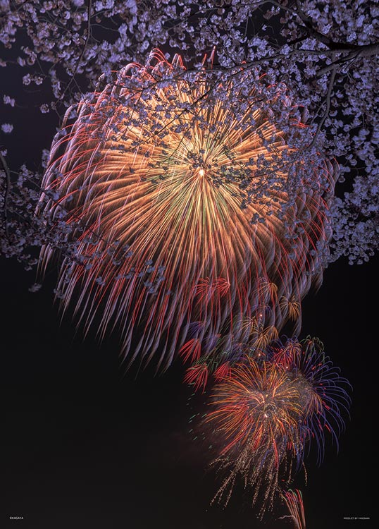巧妙地將煙花綻放的時刻以及地面的花朵重疊在一起。