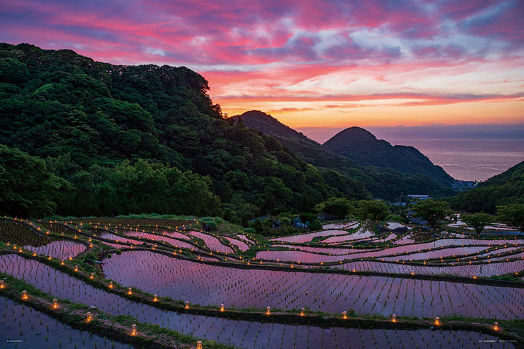 與此次活動相關的是,在稻田的山脊上點起蠟燭,再現了夢幻般的景色。